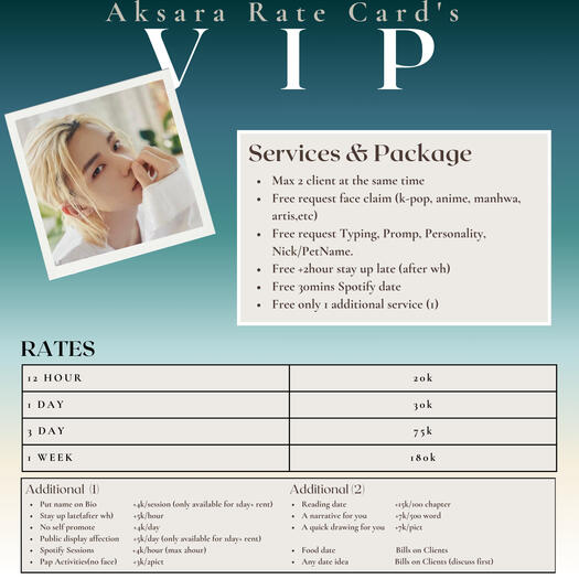 | Public display affection | +5k/day | (only available for 1day+ rent) |